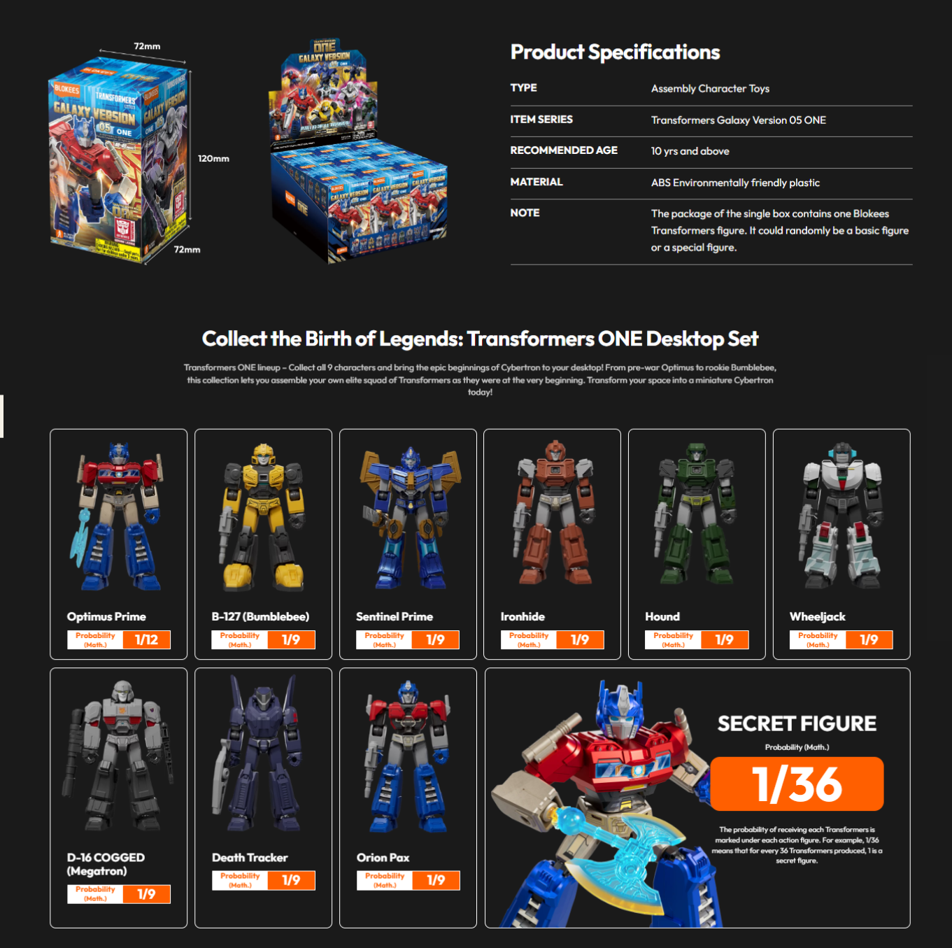 Dive into the Transformers universe with Blokees Figures Galaxy Version 05 ONE! This collection brings the origins story to life with 9 iconic characters from the "Transformers: One" movie. Each figure features an impressive 20+ points of articulation, allowing for incredibly dynamic poses and endless play possibilities.